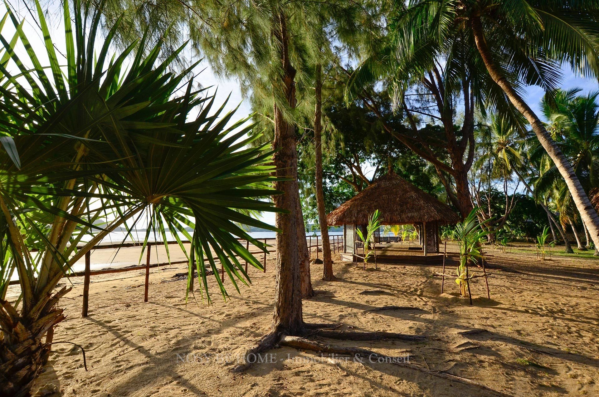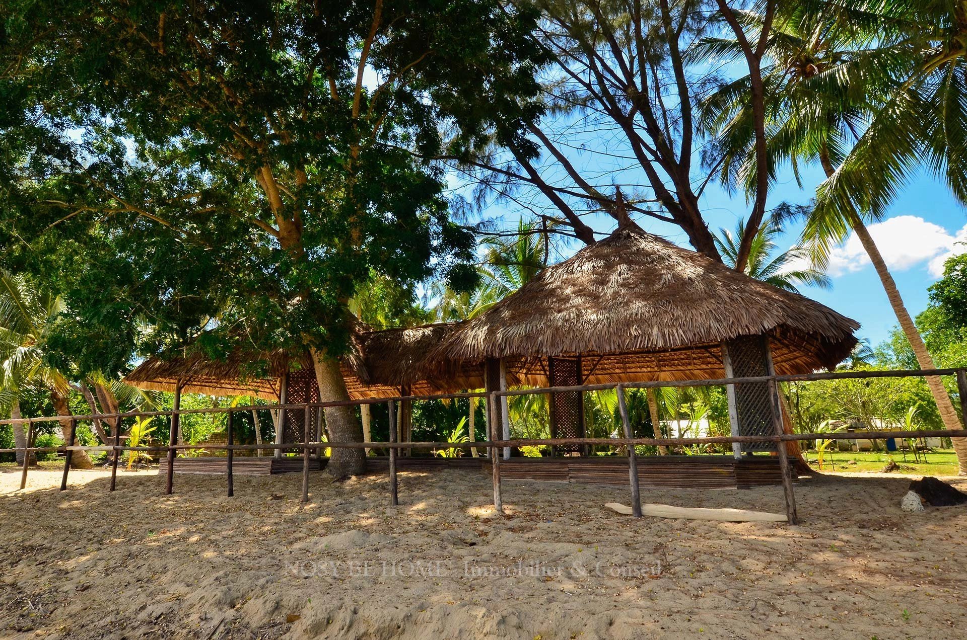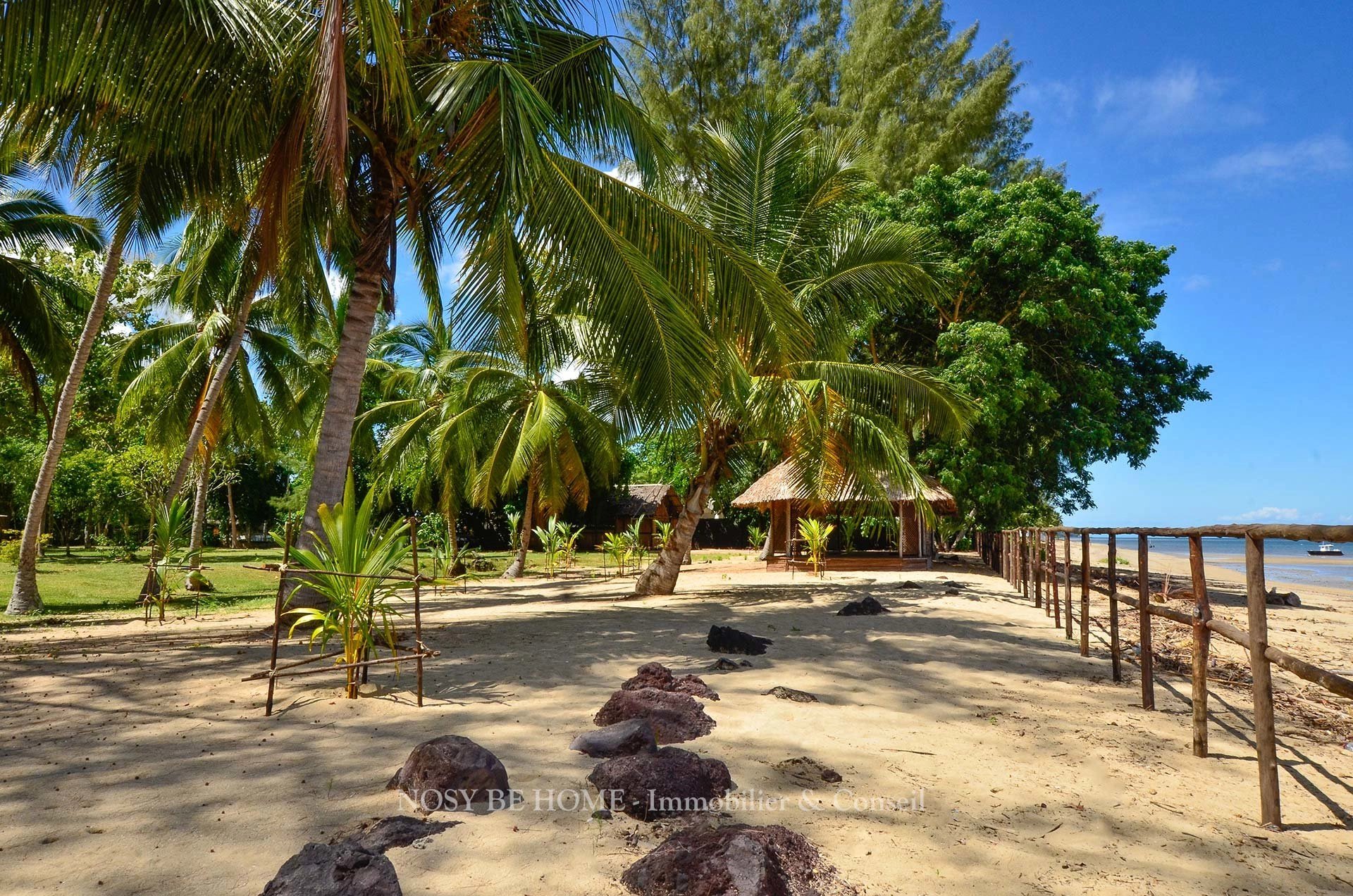 Le site comprend un magnifique parc complanté de nombreuses espèces tropicales endémiques, une cocoteraie sur plage privée, 1 maison et 3 bungalows à rafraichir.